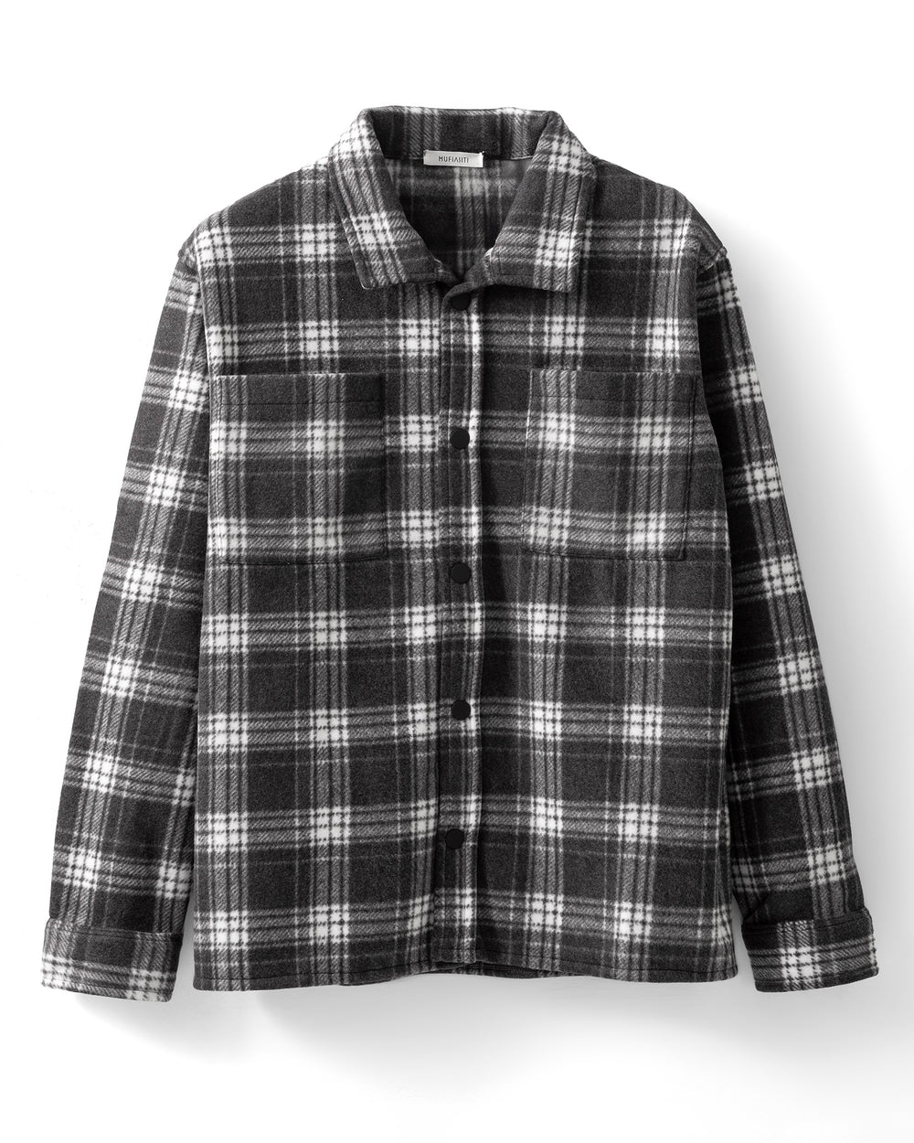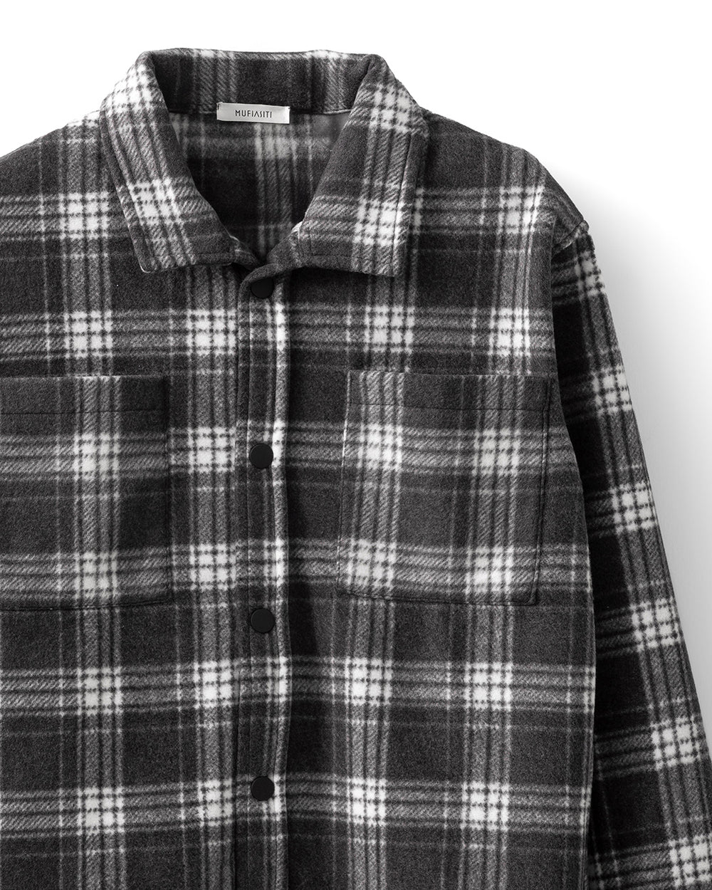 An oversized wool check shirt — crafted from premium soft wool for warmth and comfort. Perfect for layering or styling solo, giving you that effortless street-ready look.